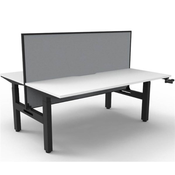 RAPIDLINE BOOST CRANK BACK TO BACK WORKSTATION WITH SCREEN 1200 X 1500 X 705MM NATURAL WHITE TOP AND BLACK SATIN FRAME