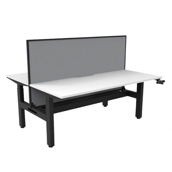 The Rapidline workstation is the newest and most affordable addition to the Boost+ range | The Boost Crank presents a manual height-adjustable workstation solution available in single sided, back to back and corner configurations | The manual crank mechanism allows for easy height adjustment, while the durable table top and sturdy underframe provide a stable and efficient workspace | Underframe finish in black satin or white satin powder coat | With fully ducted cable tray with punchout for power and data to be fitted to either external or internal of frame