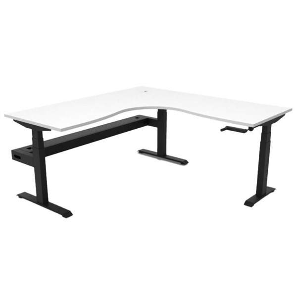 The Rapidline workstation is the newest and most affordable addition to the Boost+ range | The Boost Crank presents a manual height-adjustable workstation solution available in single sided, back to back and corner configurations | The manual crank mechanism allows for easy height adjustment, while the durable table top and sturdy underframe provide a stable and efficient workspace | Underframe finish in black satin or white satin powder coat | With fully ducted cable tray with punchout for power and data to be fitted to either external or internal of frame