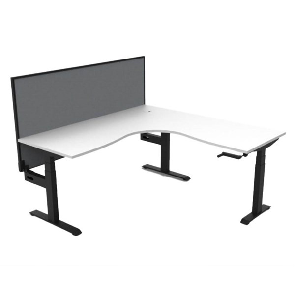 RAPIDLINE BOOST CRANK CORNER WORKSTATION WITH SCREEN 1800 X 1500 X 750MM NATURAL WHITE TOP AND BLACK SATIN FRAME