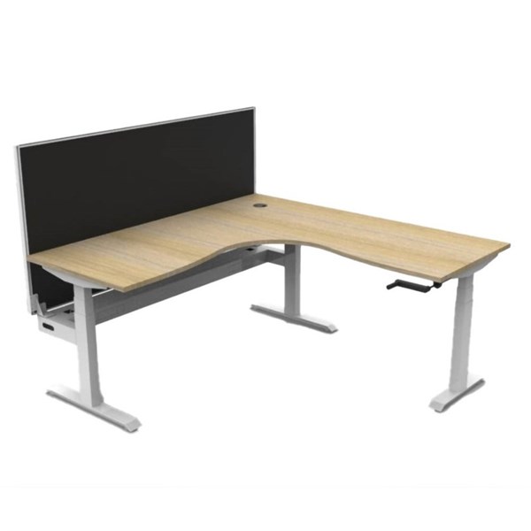 The Rapidline workstation is the newest and most affordable addition to the Boost+ range | The Boost Crank presents a manual height-adjustable workstation solution available in single sided, back to back and corner configurations | The manual crank mechanism allows for easy height adjustment, while the durable table top and sturdy underframe provide a stable and efficient workspace | Underframe finish in black satin or white satin powder coat | With fully ducted cable tray with punchout for power and data to be fitted to either external or internal of frame