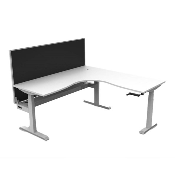 The Rapidline workstation is the newest and most affordable addition to the Boost+ range | The Boost Crank presents a manual height-adjustable workstation solution available in single sided, back to back and corner configurations | The manual crank mechanism allows for easy height adjustment, while the durable table top and sturdy underframe provide a stable and efficient workspace | Underframe finish in black satin or white satin powder coat | With fully ducted cable tray with punchout for power and data to be fitted to either external or internal of frame