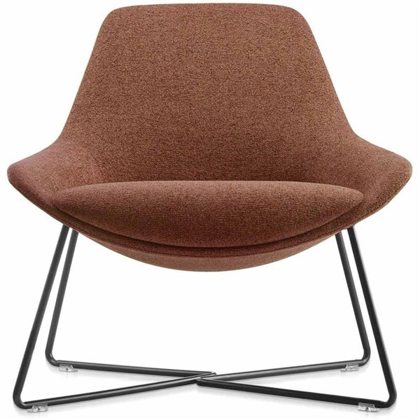 The Lutie Cross Base Breakout Lounge Chair combines comfort and style seamlessly | Featuring a solid steel loop rod cross base, steel inner frame and molded foam for the backrest and seat, it is a inviting piece for any reception, meeting or breakout area | GreenGuard Gold and BIFMA certified | Backed by a 5 year warranty