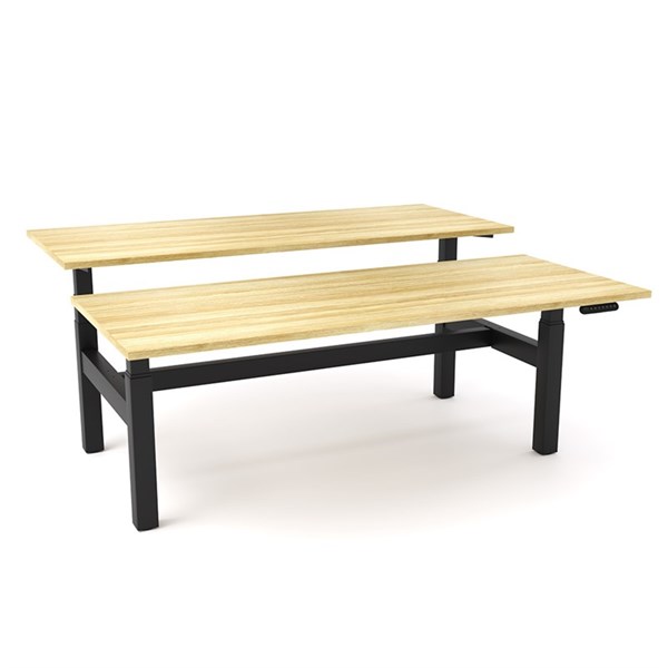OLG AGILEMOTION DOUBLE SIDED DESK DUAL MOTOR ELECTRIC HEIGHT ADJUSTABLE 1200MM X 750MM BLACK FRAME / NEW OAK TOP