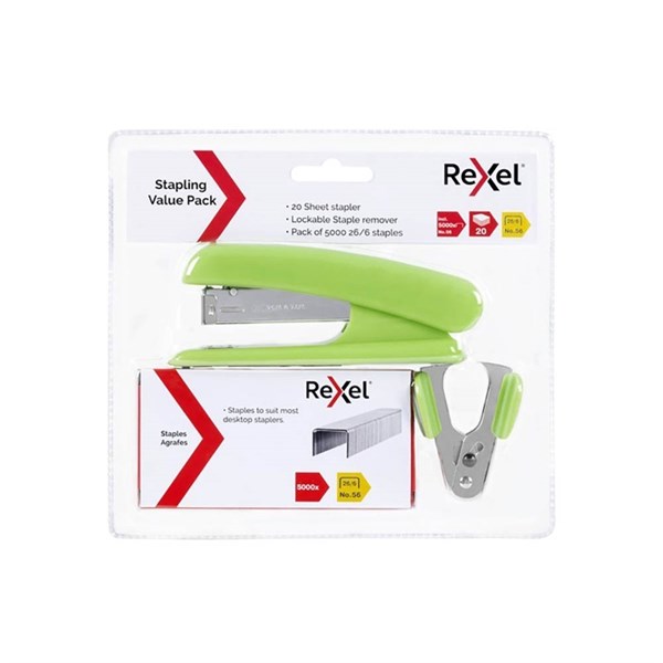 Bright, fun and modern half strip stapler, with sturdy plastic construction and rubber feet to protect desks | Kit contains half strip stapler, staple remover and staples | Staples up to 20 sheets of paper (80 gsm)