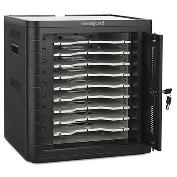 Kensington's USB-C charging cabinet is a secure and efficient solution for charging up to 10 devices at once | With fast pd 3.0 technology and compatibility with the latest usb-c devices | Perfect for schools, offices, and healthcare settings | Rapidly and simultaneously charges tablets, smartphones, headphones, portable gaming consoles, and more | Lockable design protects valuable electronics against theft and damage | Supports USB-C devices without the need for adapters | Adjustable shelving accommodates up to 10 devices | Tamper-resistant door enhances security | Integrated cooling system prevents stored devices from overheating | LED indicators provide real-time charging status updates | Meets ISO/IEC 270001 standards for data protection | 1-year limited warranty