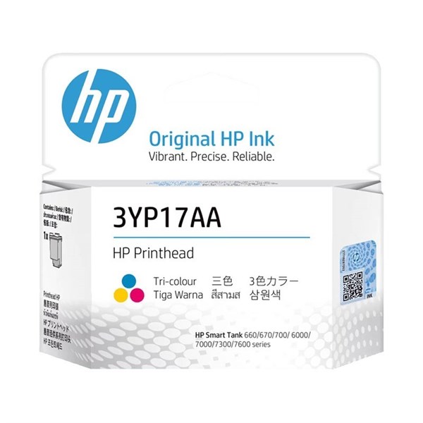 The HP 3YP17AA is an original HP tri-color inkjet printhead (Cyan, Magenta, Yellow) designed for HP's Smart Tank series | Works with your HP ink tank system and Original HP inks to print thousands of pages | Continue printing with printheads that snap into place for HP premium quality and reliability