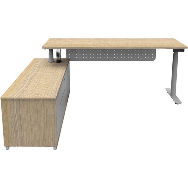 RAPIDLINE HALO PLUS EXECUTIVE HEIGHT ADJUSTABLE WORKSTATION WITH MODESTY PANEL LHC 1800 X 750MM NATURAL OAK/WHITE