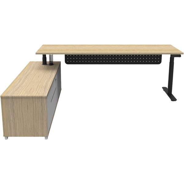 RAPIDLINE HALO PLUS EXECUTIVE HEIGHT ADJUSTABLE WORKSTATION WITH MODESTY PANEL LHC 2100 X 750MM NATURAL OAK/BLACK