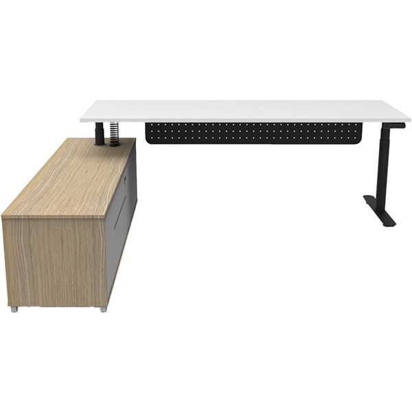RAPIDLINE HALO PLUS EXECUTIVE HEIGHT ADJUSTABLE WORKSTATION WITH MODESTY PANEL LHC 2100 X 750MM NATURAL WHITE/BLACK