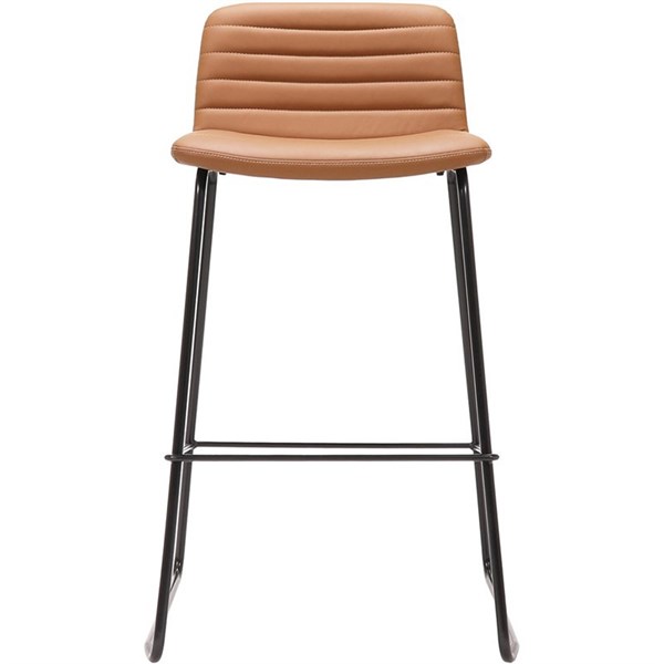 Create an engaging workspace with the Pixel Counter Stool | Featuring a comfortable leather seat with ribbed stitching detail and a sturdy powder-coated sled base, this stool offers both style and support | Its sleek design and compact footprint make it perfect for any setting, while the 5-year warranty ensures long-lasting performance | Amber PU Leather Upholstery