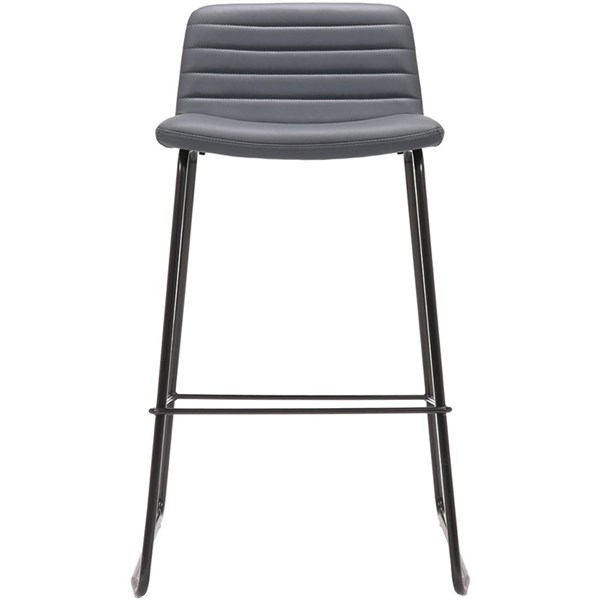 Create an engaging workspace with the Pixel Counter Stool | Featuring a comfortable leather seat with ribbed stitching detail and a sturdy powder-coated sled base, this stool offers both style and support | Its sleek design and compact footprint make it perfect for any setting, while the 5-year warranty ensures long-lasting performance | French Navy PU Leather Upholstery