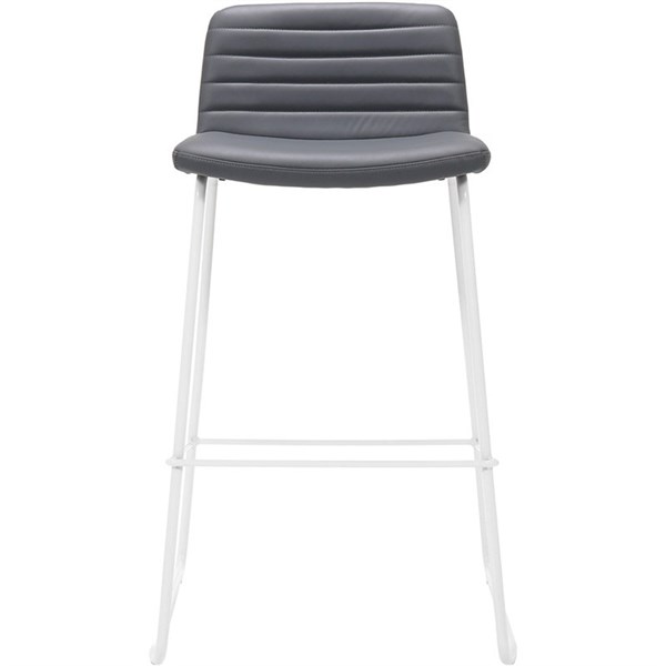 Create an engaging workspace with the Pixel Counter Stool | Featuring a comfortable leather seat with ribbed stitching detail and a sturdy powder-coated sled base, this stool offers both style and support | Its sleek design and compact footprint make it perfect for any setting, while the 5-year warranty ensures long-lasting performance | French Navy PU Leather Upholstery