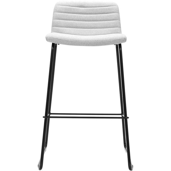 Create an engaging workspace with the Pixel Counter Stool | Featuring a comfortable leather seat with ribbed stitching detail and a sturdy powder-coated sled base, this stool offers both style and support | Its sleek design and compact footprint make it perfect for any setting, while the 5-year warranty ensures long-lasting performance | Light Grey Fabric Upholstery