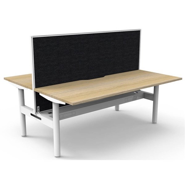 The Halo Static Back To Back Workstation provides a collaborative workspace for two users | It features a generous work surface with a scallop cut-out to the rear and a robust powder-coated frame | Adjustable leveling feet ensure stability on uneven floors | This workstation is designed for efficient and comfortable work, and can be customised with optional accessories like cable management solutions and privacy screens