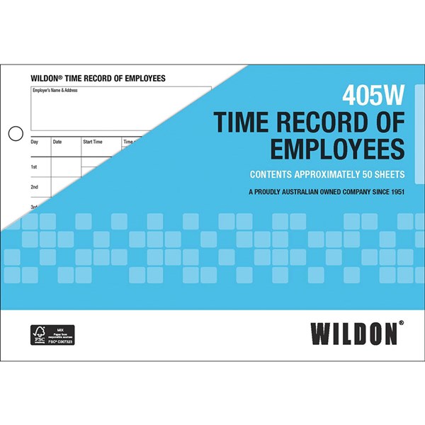 Tracks employees weekly work hours in detail | Suitable for regular weekly use or for logging irregular work times | Includes sections for breaks (meal and others), standard hours, and overtime | Shrink-wrapped packaging | Pre-punched with two holes for easy filing