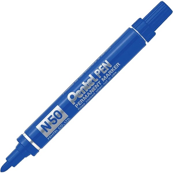 Pentel N50 Permanent Marker has a hard-wearing fibre tip protected by a vapour sealed cap to ensure the tip stays moist | Lets you draw detailed lines and is ideal for writing | Permanent, waterproof ink which dries instantly on the page | Will write on almost any surface including cardboard, plastic, metal, wood, glass | Robust aluminium barrels | Bonded fibre tips retain their shape | Vivid waterproof ink |This product is sold individually- For BOX quantities, please order in multiples of 12