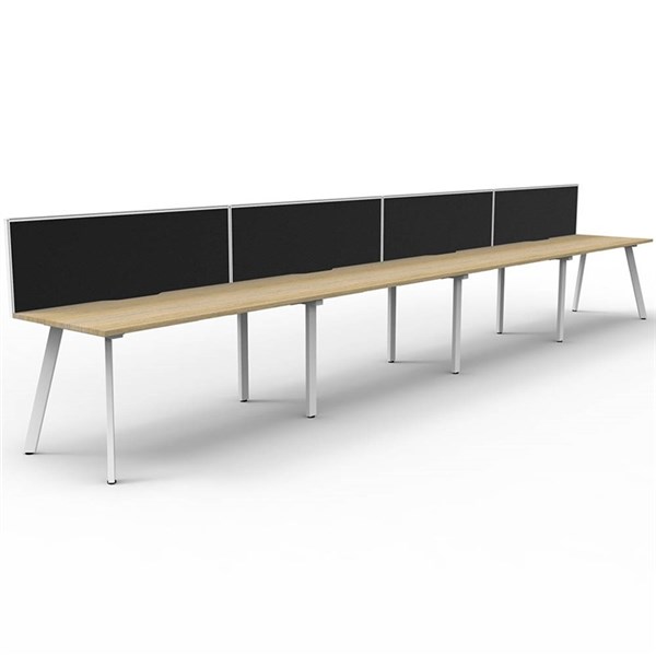 Maximise space and create an efficient working environment with Rapid Eternity workstations | The stylish Eternity leg adds style to each workstation without being intrusive, while the recessed leg between joining workstations creates full leg access | Stylish 45 degree Eternity leg | Maximise office space | 750mm Depth work top per user | 30mm Cable access gap between users | Dual Cross Bar For Added Stability | E1 Enviroboard Melamine Worksurface | Adjustable Levelling feet | Desk partition screen with matching Powdercoated frame | Backed by a 5 Year Warranty