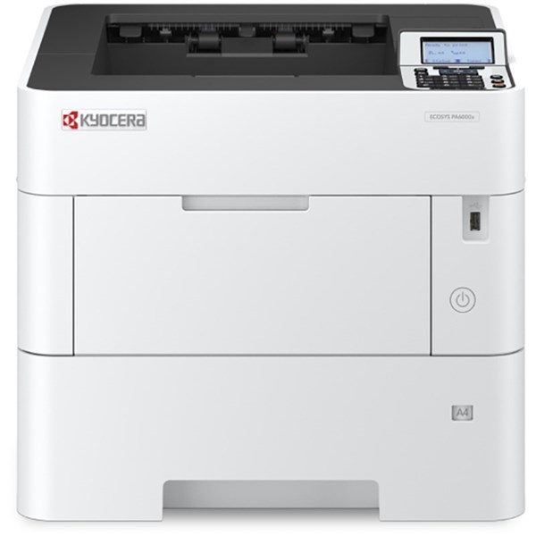 The ECOSYS PA6000x delivers an exceptional high-speed printing of up to 60 pages per minute and a first print time of 4.5 seconds, that guarantee efficient and reliable operation in a vibrant professional work environment | The low level of total cost of ownership and intelligent security features provide more than you expect | Data overwrite and encryption, Trusted Platform Module, Secure Boot and Run Time Integrity Check, S/MIME and TLS 1.3 | Up to 6 ways of paper input for max- 2,600 sheet capacity | Strenghen affinity with Microsoft Universal Print | Optional SSD hard disk with Data Security Kit | Environmentally friendly: long-life components, low energy consumption | Multi-Functional Products for day-to-day tasks- Kyocera provides the industrys most comprehensive line of award-winning low to high volume devices | A4 printer for all needs- High quality, high reliability and high efficiency are essential | 2 years On Site warranty