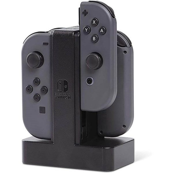 The Joy-Con charging station is the easiest solution for charging your nintendo switch joy con controllers | Charge 4 joy con controllers at a time for multiple players, or keep an extra pair charged for single players to switch out | Simply slide the Joy-Con controllers down and wait until each charge LED turns green | Weighted base for stability | Powered via USB
